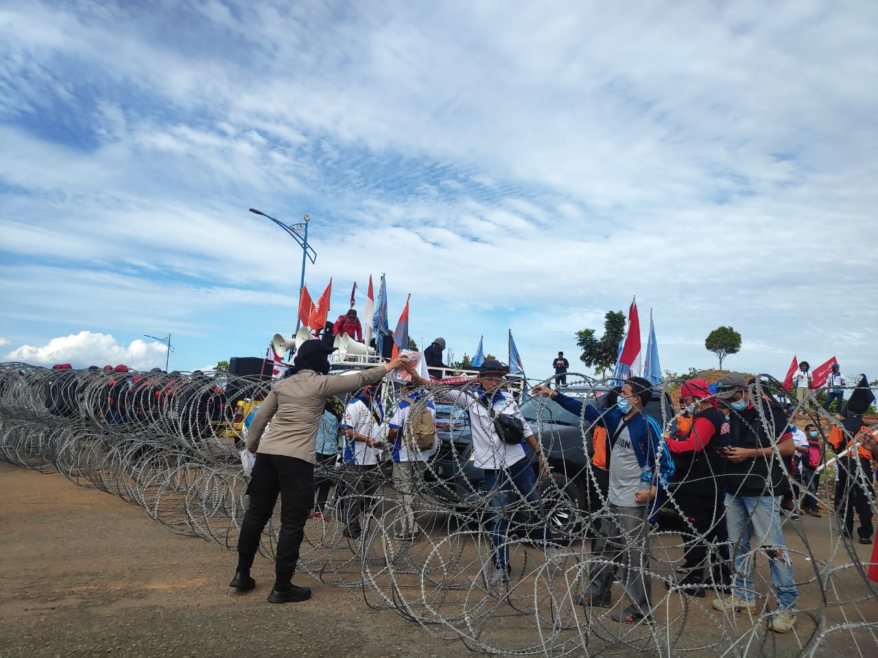 TANJUNGPINANG–  Polres Tanjungpinang melaksanakan pengamanan aksi unjuk rasa aliansi serikat pekerja/serikat buruh se-Kepri di Kantor Gubernur Provinsi Kepri. Senin (29/11/2021) siang.