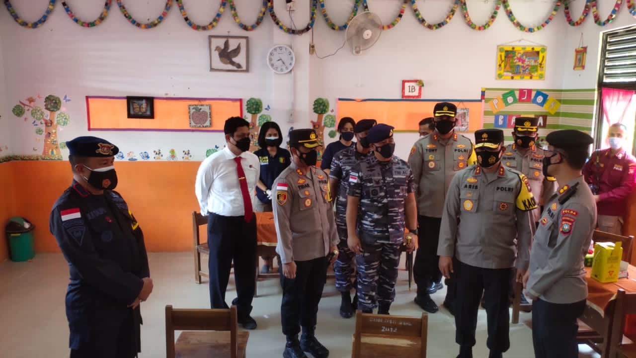 BATAM– Komandan Satuan Brimob Polda Kepri Kombes Pol M.Rendra Salipu, S.I.K., M.Si mendampingi Kapolda Kepri Irjen Pol Aris Budiman meninjau pelaksanaan vaksinasi serentak seluruh Indonesia terhadap anak usia 6-11 tahun di SDN 002 Sagulung. Selasa, 28 Desember 2021
