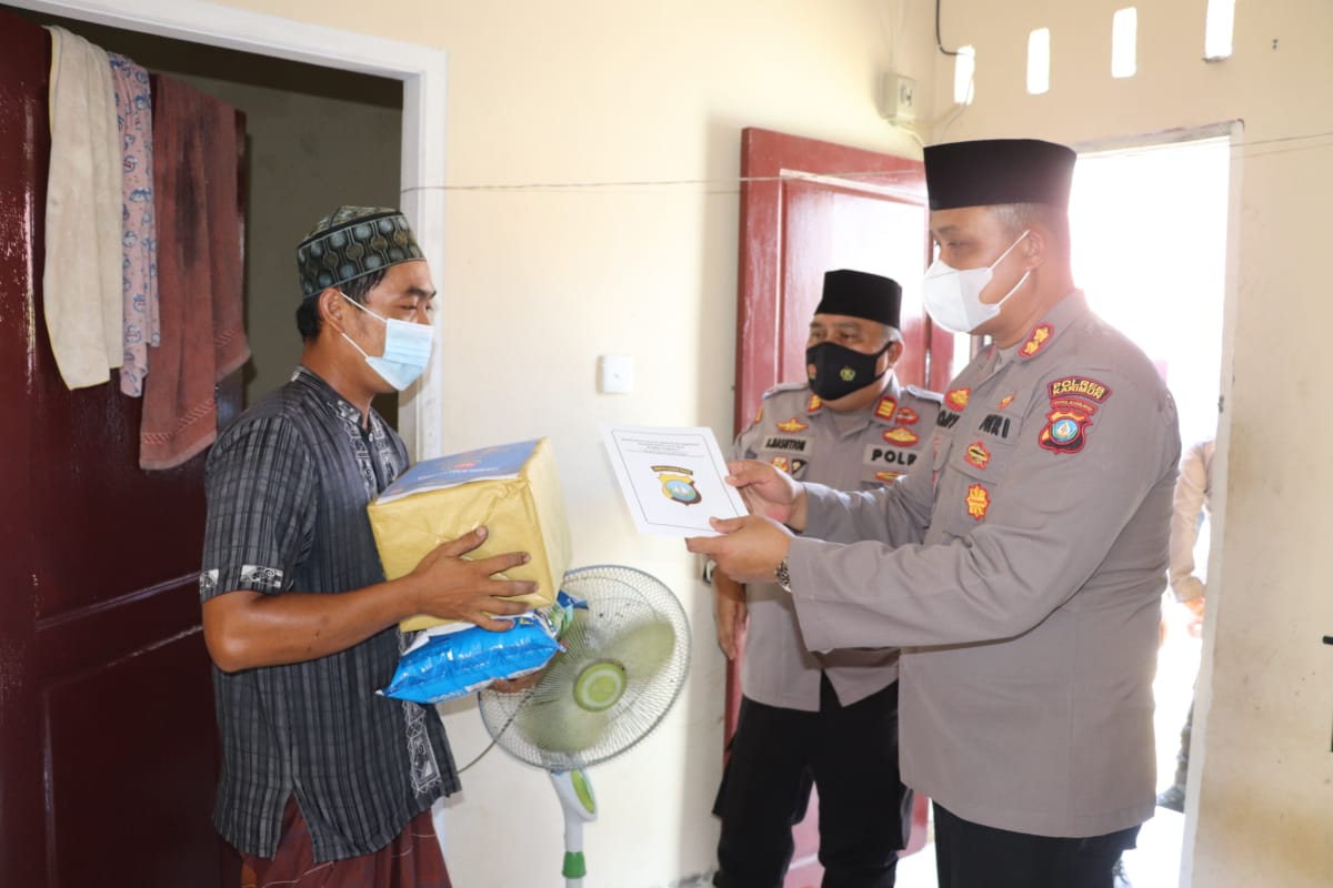 KARIMUN – Kapolres Karimun AKBP Tony Pantano, SIK, SH usai Ibadah Shalat Jumat menggelar kegiatan bakti sosial dalam rangka membantu warga yang sedang mengalami kesulitan dimasa Covid-19. Jumat (15/10/2021).