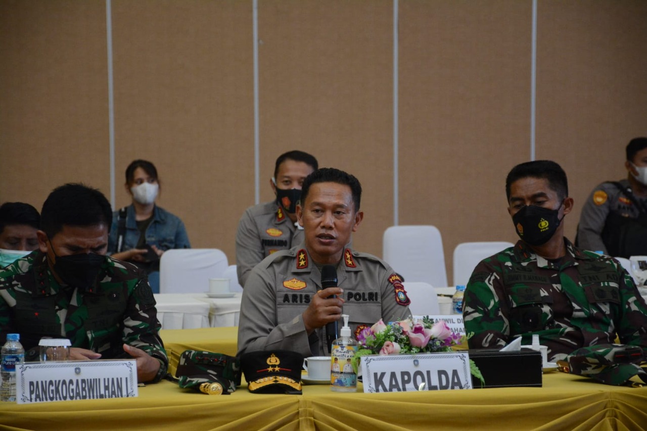 BATAM – Kapolda Kepri Irjen Pol Dr. Aris Budiman, M.Si., hadiri pertemuan Forkopimda Kepri dengan Badan Legislasi DPR RI  dalam rangka pembahasan RUU pembentukan Pengadilan Tinggi dan Pengadilan Tinggi Agama Provinsi Kepri di Aula Wan Seri Beni Kantor Gubernur Provinsi Kepri Dompak. Kamis (11/11/2021).