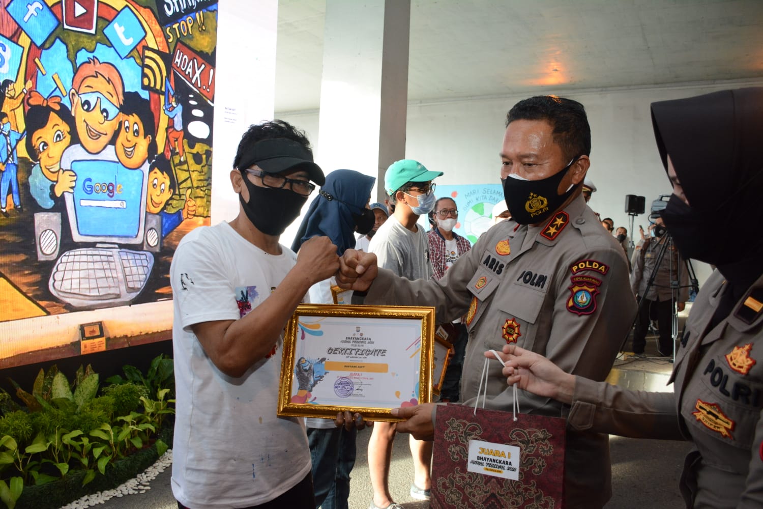 Juara pertama diberikan kepada Datun Budi Santoso dari Tim Batam Art mendapat hadiah sebesar Rp. 7.500.000,- dan Sertifikat Apresiasi dari Kapolda Kepri yang langsung diserahkan oleh Kapolda Kepri Irjen Pol Dr. Aris Budiman, M.Si.