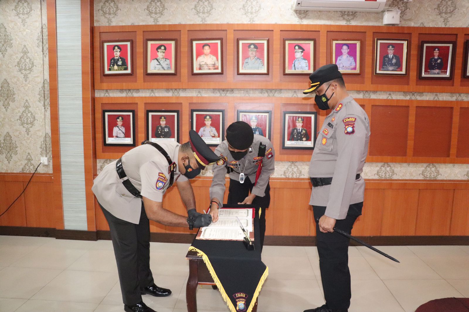 KARIMUN – Polres Karimun Polda Kepri menggelar upacara pelantikan Kabag Logistik dan Serah Terima Jabatan (Sertijab) Kasat Binmas, kegiatan dilaksanakan di Rupatama Polres Karimun dengan menerapkan Protokol Kesehatan 5M, Kamis (11/11/2021) pagi.
