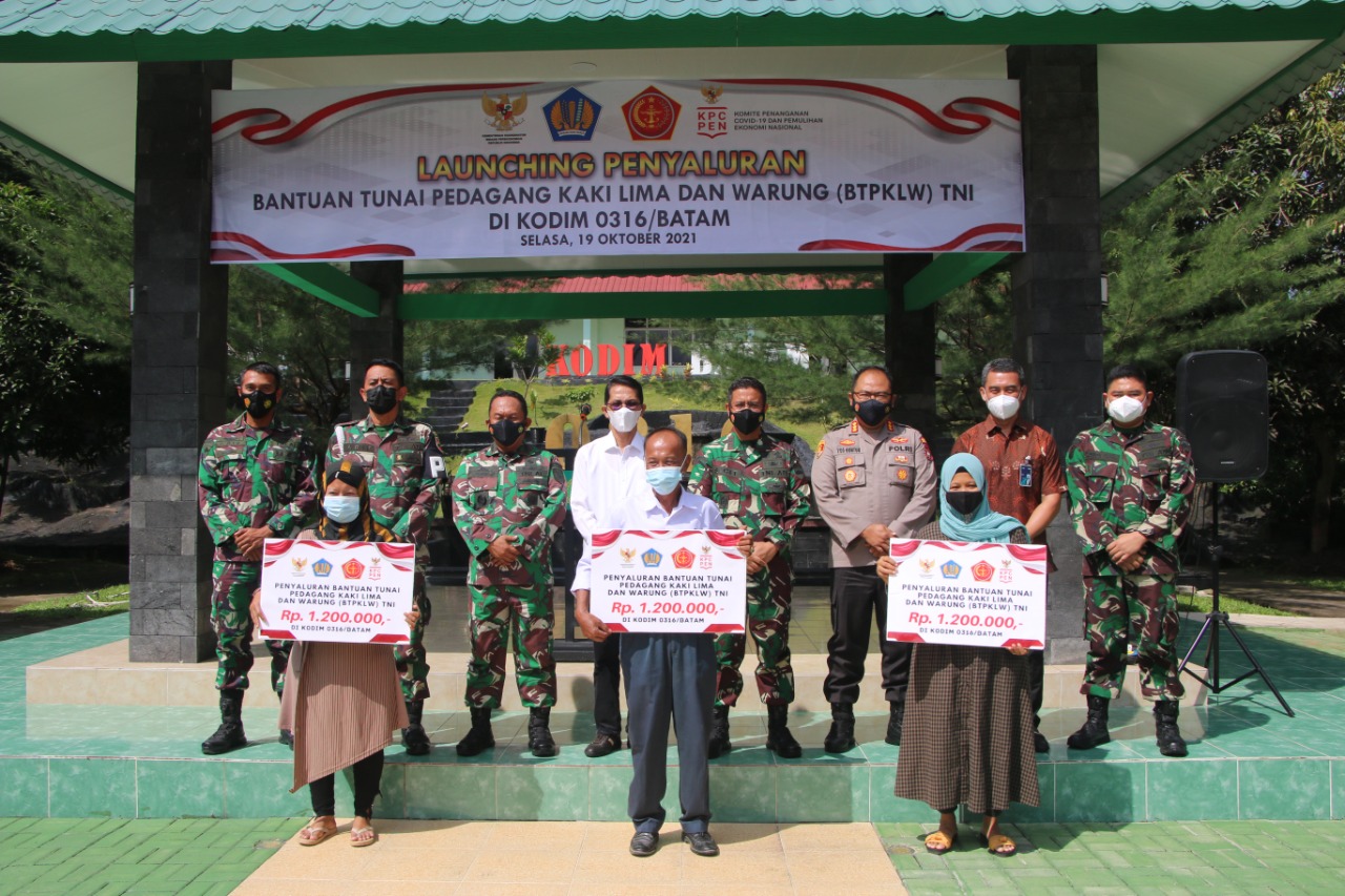 BATAM – Kapolresta Barelang KBP Yos Guntur, SH, SIK, MH menghadiri Launching Penyaluran Bantuan Tunai Pedagang Kaki Lima dan Warung (BTPKLW) TNI bertempat di Kodim 0316 Batam. Selasa (19/10/2021).