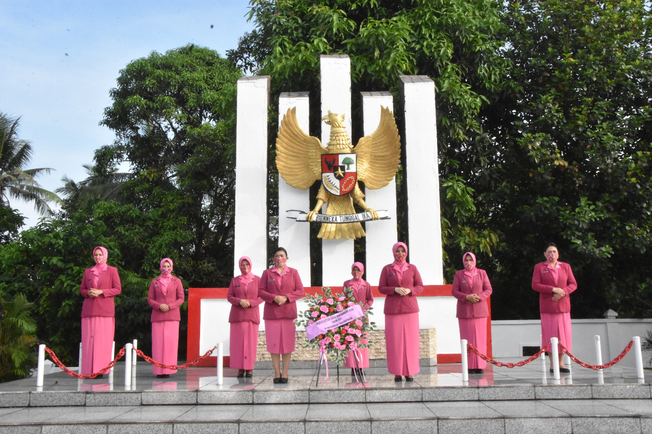 Memasuki rangkaian acara ziarah, Ketua Bhayangkari Cabang Tanjungpinang beserta Wakil Ketua Bhayangkari Cabang Tanjungpinang dan pengurus terlebih dahulu mengisi dan menandatangani buku tamu. Kemudian, dimulainya upacara penghormatan kepada arwah para Pahlawan, dengan mengheningkan cipta dan kemudian dilanjutkan dengan peletakan karangan bunga secara simbolis di Tugu Makam Pahlawan.