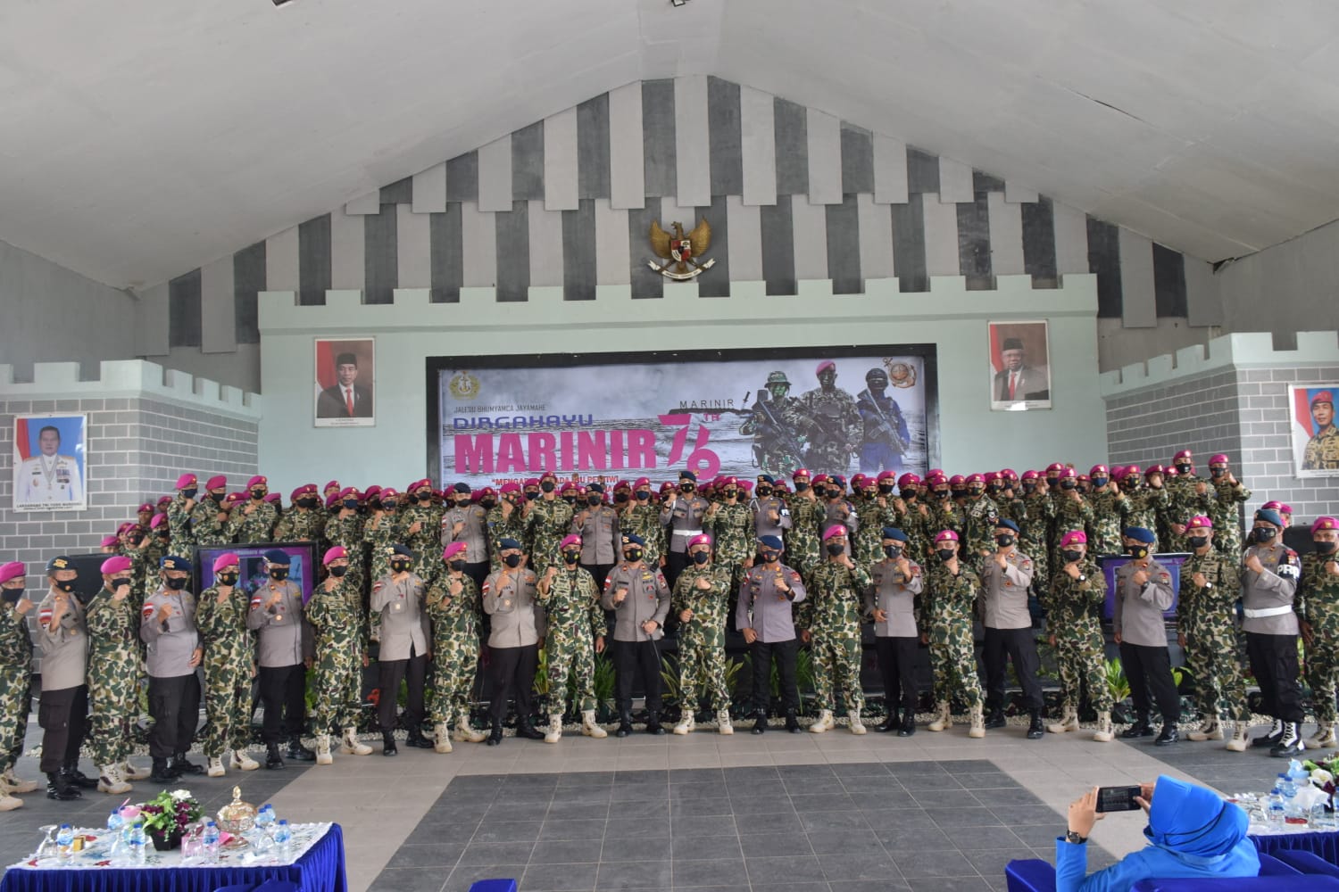 Dansat Brimob Polda Kepri Kombes Pol M Rendra Salipu melalui Komandan Batalyon A Pelopor Kompol Darmin mengucapkan selamat Hari Ulang Tahun (HUT) Korps Marinir Ke-76.