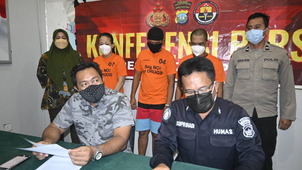 TANJUNGPINANG– Sat Resnarkoba Polres Tanjungpinang menggelar konferensi pers kasus tindak Pidana Narkotika. Jumat (12/11/2021)