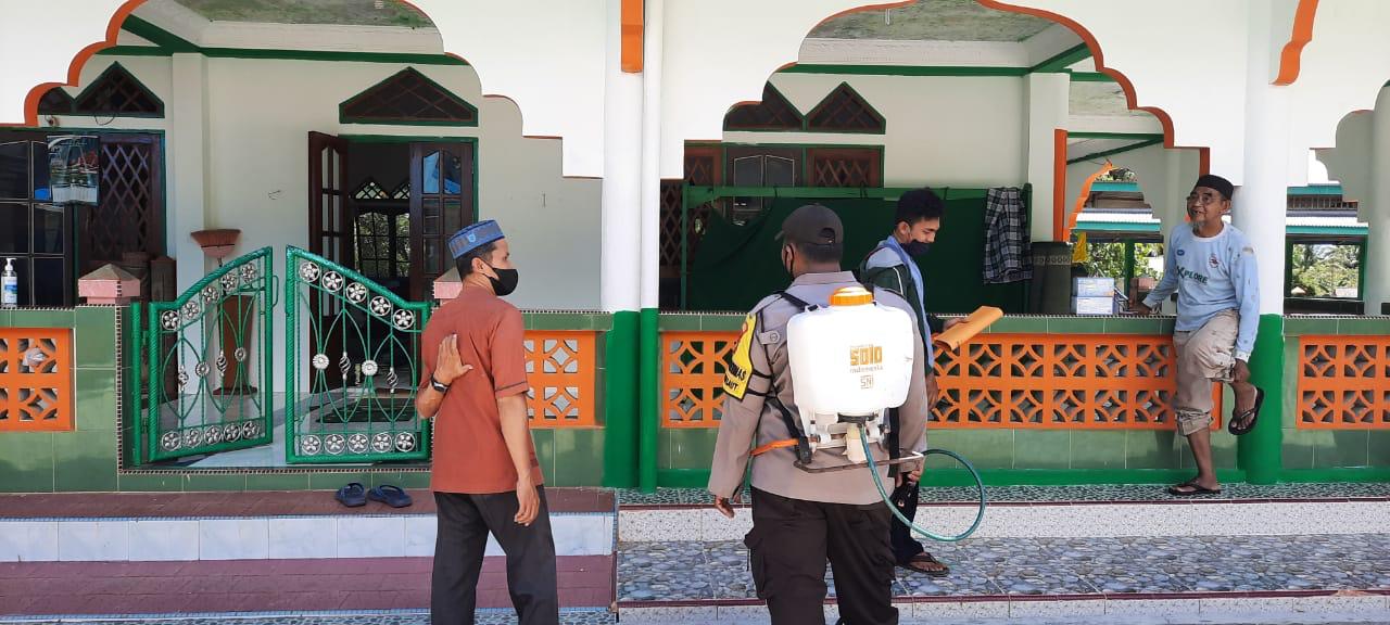 NATUNA – Polres Natuna melalui Polsek Bunguran Timur melaksanakan sterilisasi dengan menyemprotkan cairan disenfektan di Masjid dan Gereja yang berada di wilayah Hukum Polsek Bunguran Timur dalam rangka H-1 Hari Raya Idul Fitri 1442 H dan Peringatan Kenaikan Isa Al Masih. Kegiatan di pimpin oleh Kapolsek Bunguran Timur AKP Firuddin pada Rabu (12/05/2021).