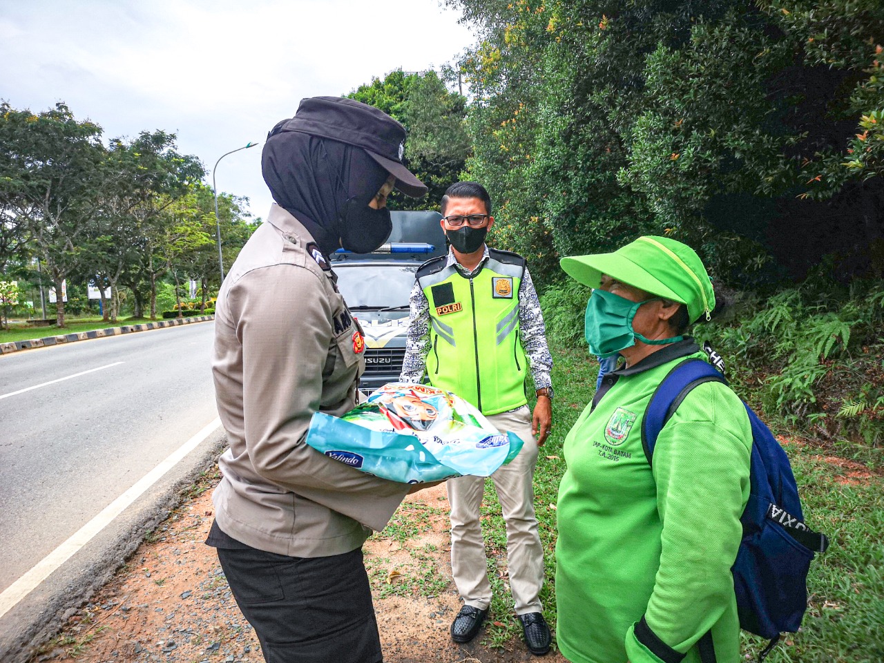 Kegiatan yang dipimpin oleh Kapolsek Kawasan Bandara Hang Nadim AKP Cut Putri Amelia Sari, SIK bersama Personil Polsek Kawasan Pelabuhan melaksanakan kegiatan Bansos Pembagian Sembako dengan Sasaran Masyarakat yang membutuhkan seperti Tukang sapu Jalanan, Tukang gali kabel , Pedagang asongan, Petugas kebersihan, Supir angkot.
