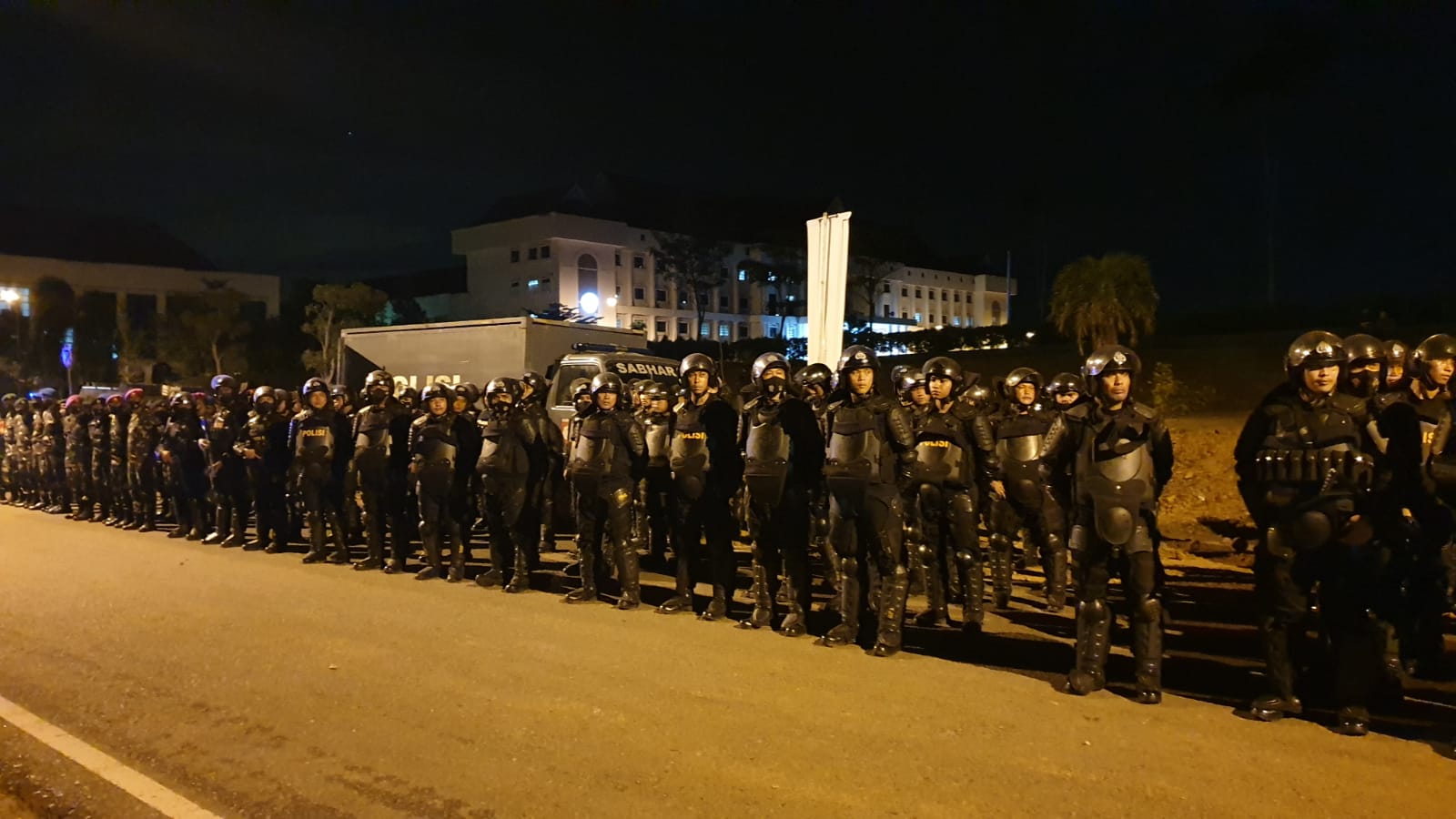 Sebanyak 1 SSK personel Brimob Polda Kepri dipimpin oleh Iptu Hermansyah, Komandan Kompi 1 Batalyon B Pelopor bersama personel pengamanan gabungan lainnya, sejak pukul 06.30 WIB bersiaga dilokasi unjuk rasa.