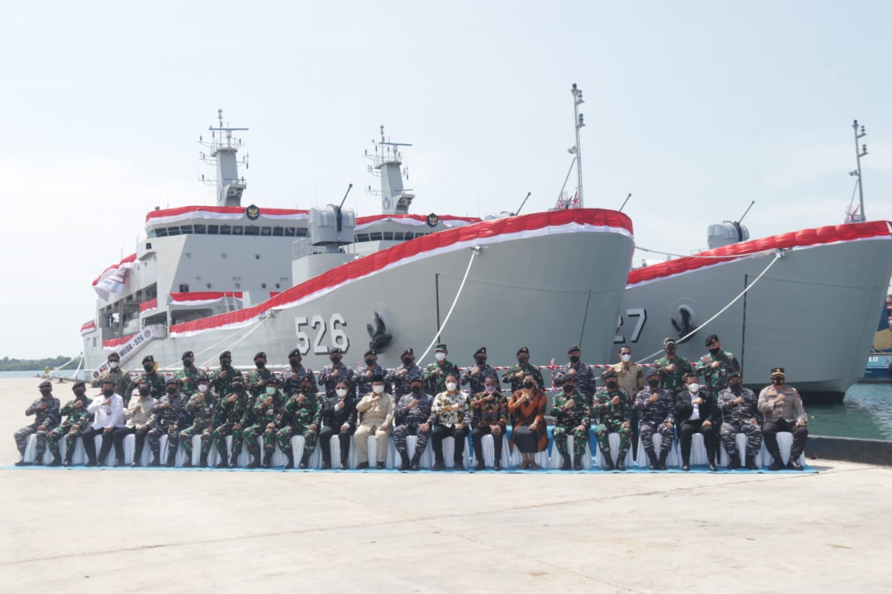 BATAM – Wakapolda Kepri Brigjen Pol Drs. Darmawan, M.Hum menghadiri peresmian KRI AT – 8 Teluk Weda – 526 dan KRI AT – 9 Teluk Wondama – 527 yang langsung diresmikan oleh Menteri Pertahanan Republik Indonesia Letnan Jenderal TNI (Purn) Prabowo Subianto dan Kepala Staf Angkatan Laut Laksamana TNI Yudo Margono, SE, MM, Turut hadir pada acara tersebut, para Pejabat Kemenhan, Forkopimda Provinsi Kepri, Pejabat TNI-Polri di Provinsi Kepri dan Komisaris beserta Direktur PT Bandar Abadi. Peresmian dilaksanakan di PT. Bandar Abadi, Batu Aji, Kota Batam. Selasa. (26/10/2021).